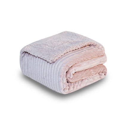 VTH MANTA ACANALADA DOBLE CARA BORREGUITO, SUAVE, ESPONJOSA Y ELEGANTE, 100% POLIÉSTER