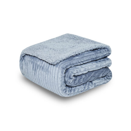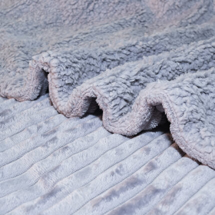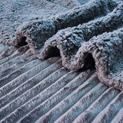 ESTA MANTA ACANALADA DE DOBLE CARA TIPO BORREGUITO ESTÁ CONFECCIONADA EN 100% POLIÉSTER, CON TEJIDO SUAVE, GRUESO Y AGRADABLE AL