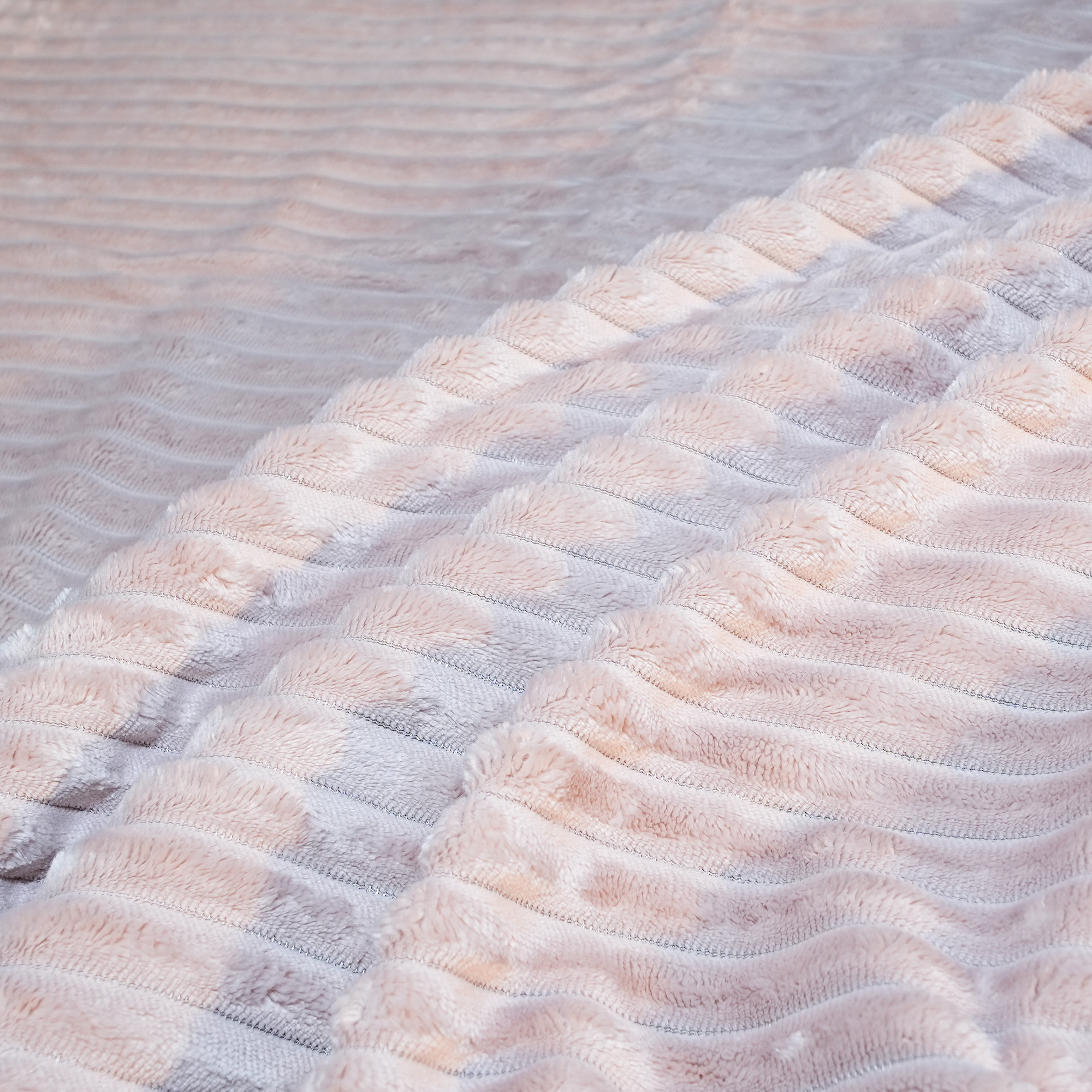 ESTA MANTA ACANALADA DE DOBLE CARA TIPO BORREGUITO ESTÁ CONFECCIONADA EN 100% POLIÉSTER, CON TEJIDO SUAVE, GRUESO Y AGRADABLE AL